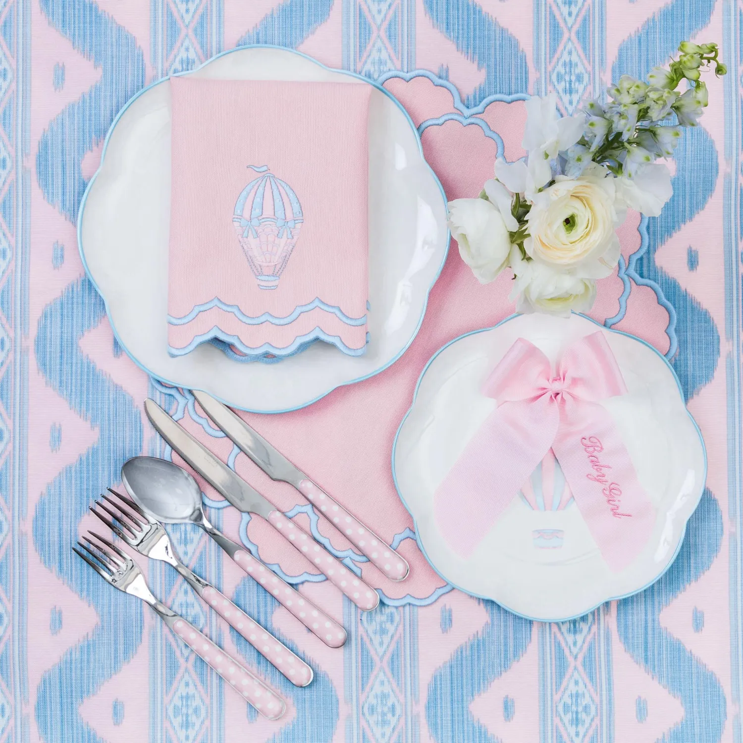 Our Lily Pink & Blue Placemats are an enchanting option for dressing your baby shower or afternoon tea tables. Designed in soft pink with a baby blue embroidered trim, these four linens are perfect for bringing a stylish edge to your events.