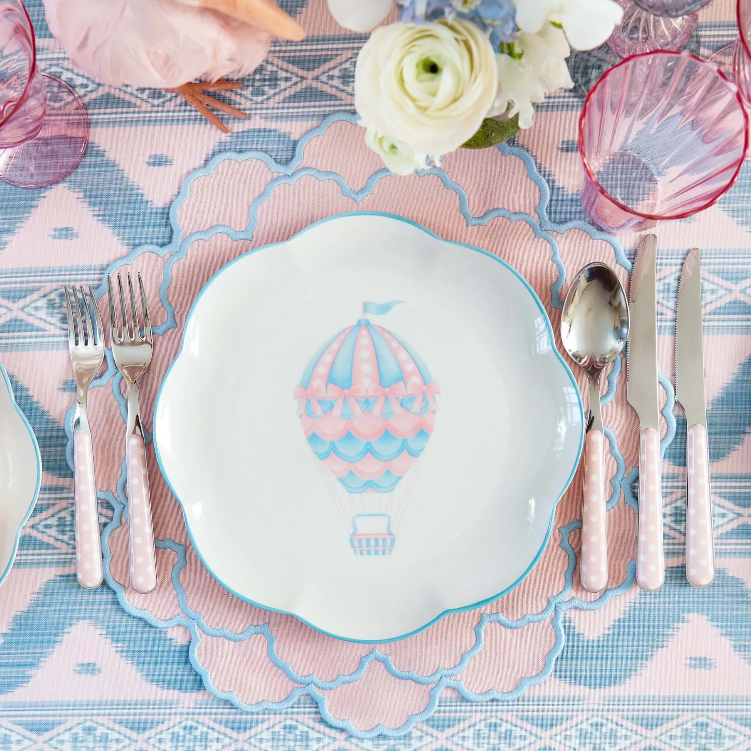 Our Lily Pink & Blue Placemats are an enchanting option for dressing your baby shower or afternoon tea tables. Desig…