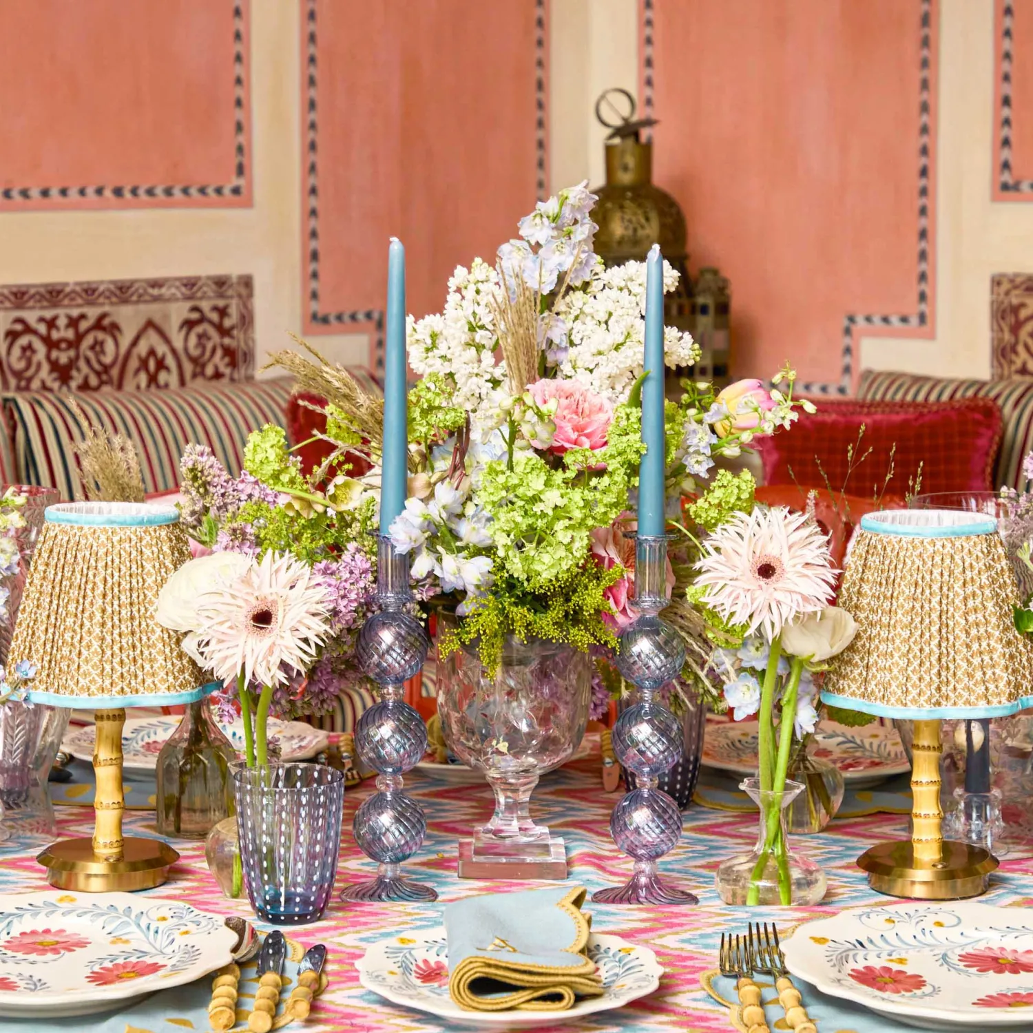 Our compact Short Bamboo Lamp is the perfect piece for adding soft, low-level lighting to your tablescapes. Coming in a bamboo design, this rechargeable piece will bring a natural edge to your decor. On top, we’ve completed the loop with our Caramel & Blue Lotus Shade for a cohesive yet versatile finish.