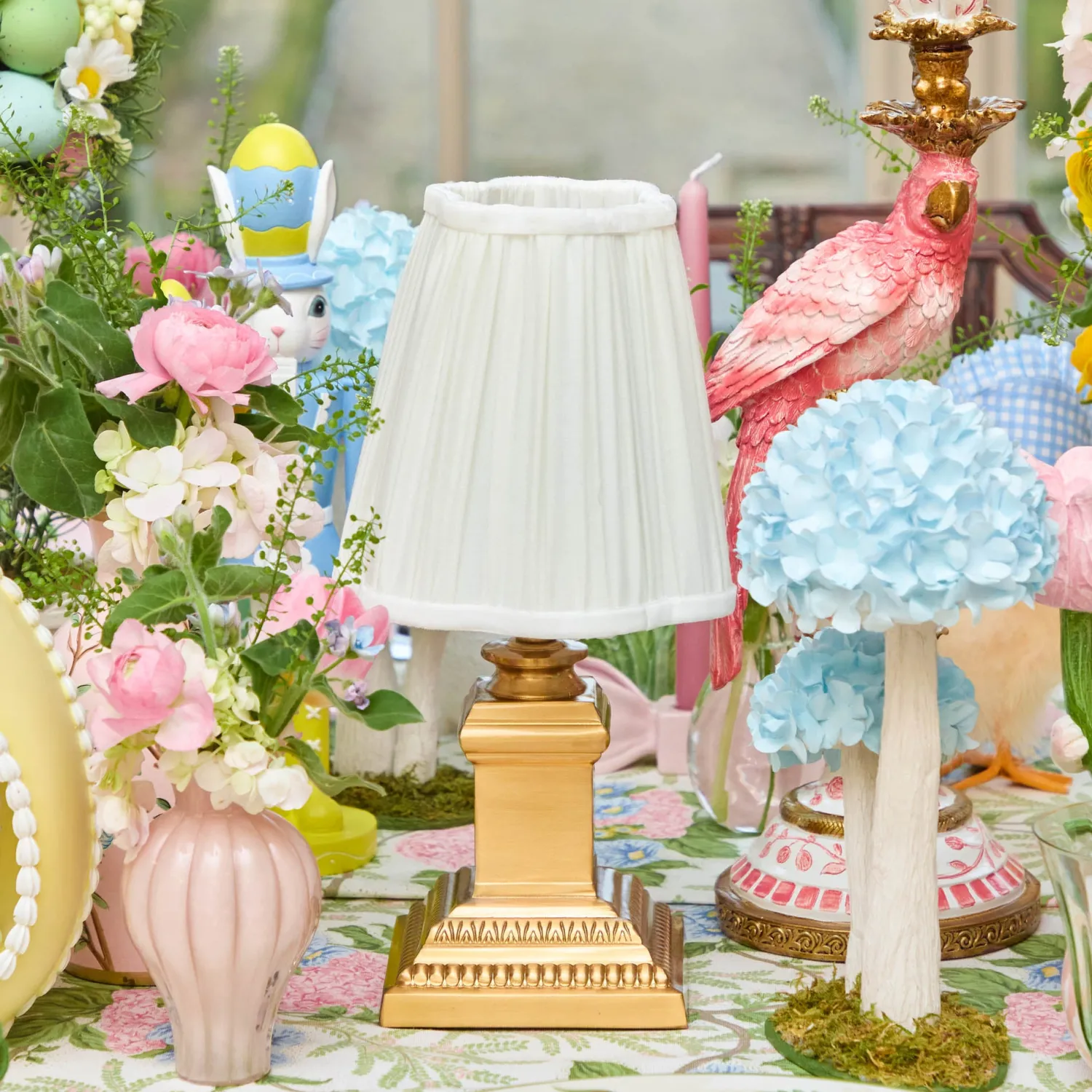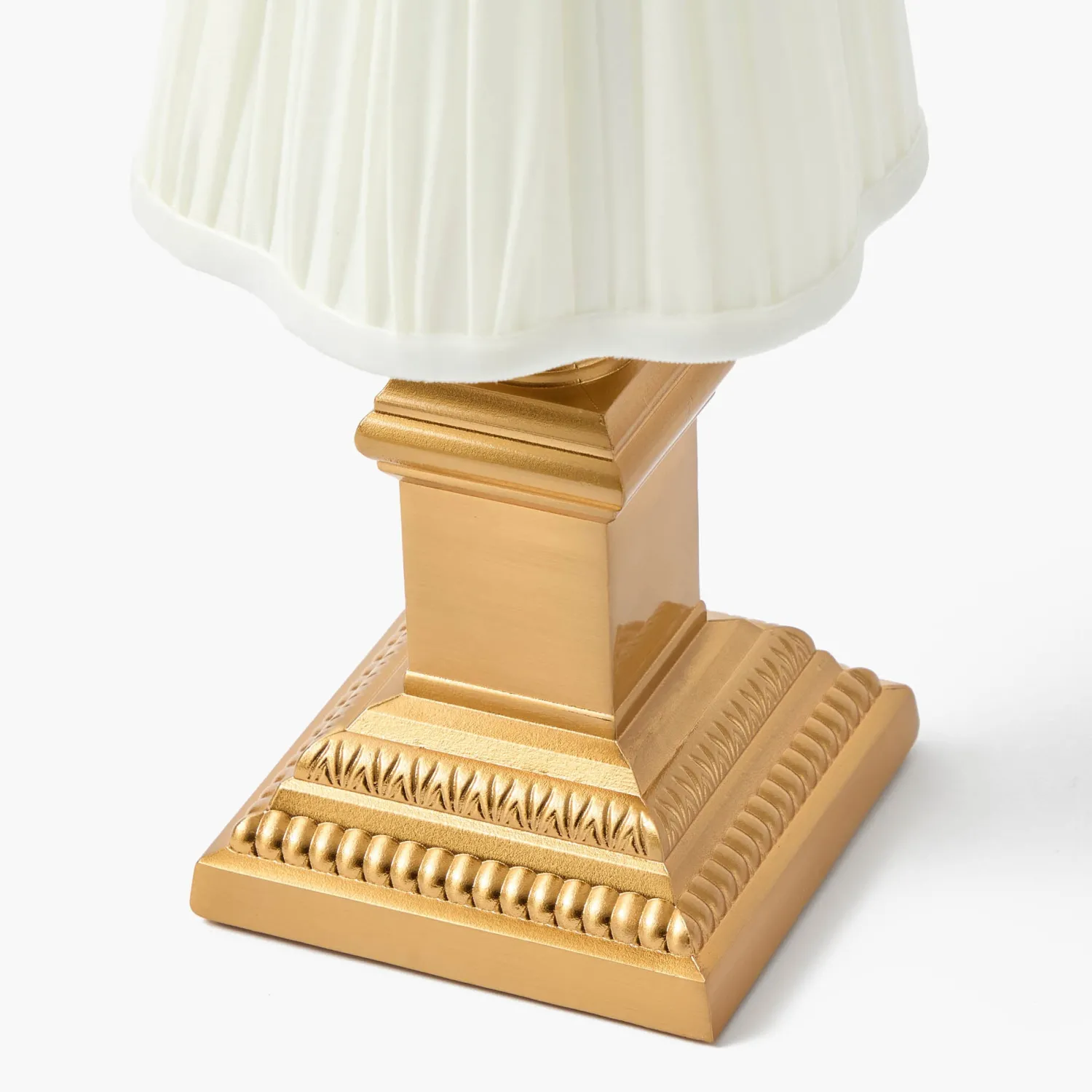 Our Short Corinthian Square Rechargeable Lamp is a sleek piece that will save you from having to deal with electrical cables. The power source of this luxurious lamp comes from the bulb itself; the bulb is completely rechargeable and can also be dimmed to your preferred light intensity.