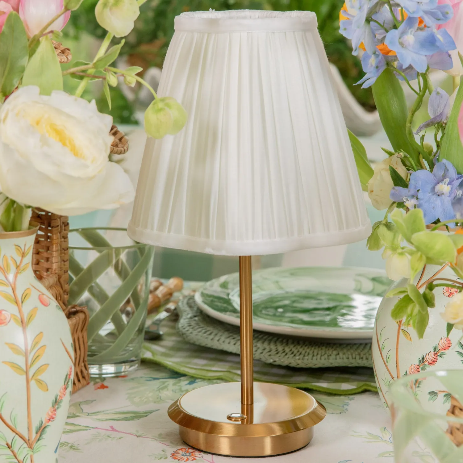 Our Short Rechargeable Lamp is a sleek alternative to corded lighting. Coming in a luxurious golden tone, this rechargeable lamp offers you an ambient glow without the worry of power supplies and cables.