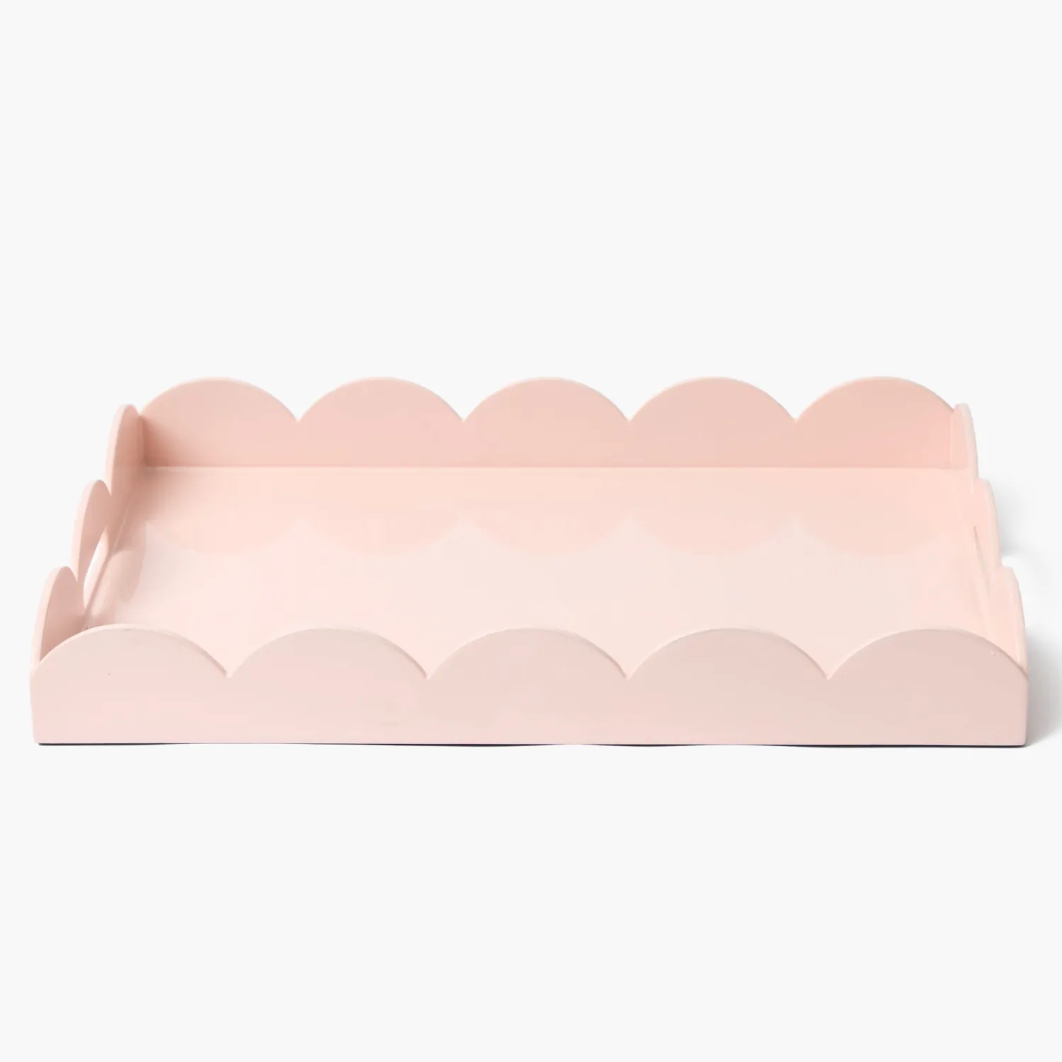 Impress your guests by serving their favourite drinks and appetisers on our Soft Pink Lacquer Tray. Coming in a glossy pastel pink with scalloped trim, this feminine piece is perfect for adding character to your home.