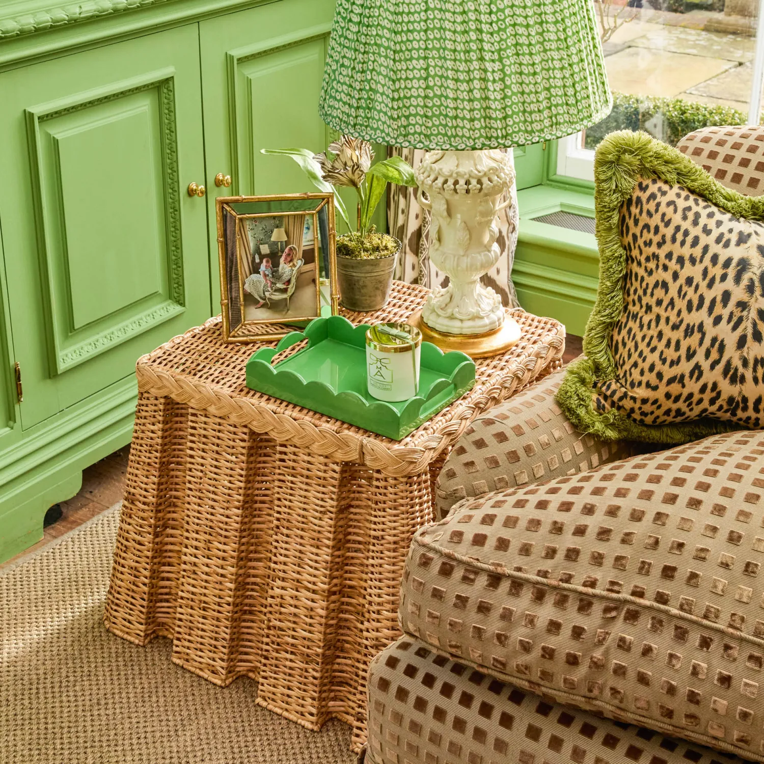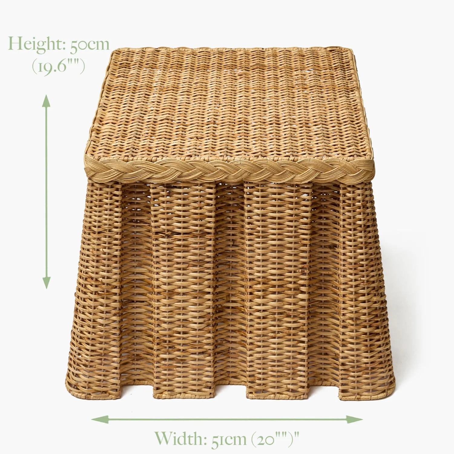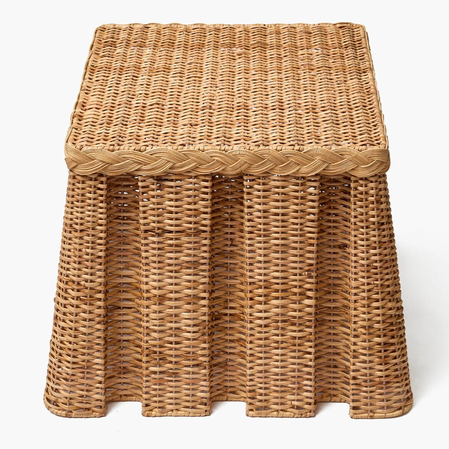 The Bettina Box Pleated Rattan Stool is a wonderful way to add natural texture and warmth to your home. Designed with elegant box pleats, it is perfect for showcasing decorative accents or table lamps.